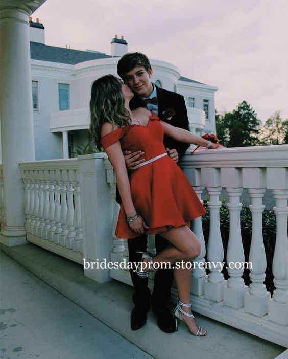 Off The Shoulder Red Homecoming Prom Dresses,Simple Dresses with Belt,Cute A Line Cocktail Dress