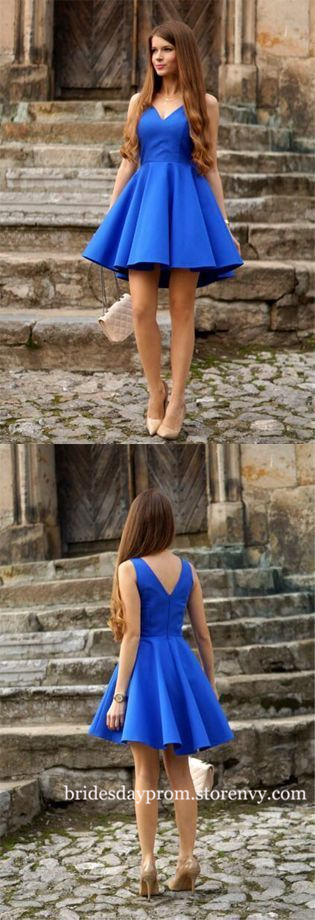 Sexy Sleeveless Short Blue Prom Dress Cocktail Dress,A Line Cocktail Dress with Back Open Cheap Satin Party for Wedding