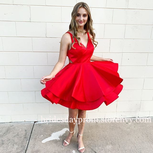 Cute Red V Neck Homecoming dresses,Back Open Cocktail Dress,Custom Made Homecoming dress