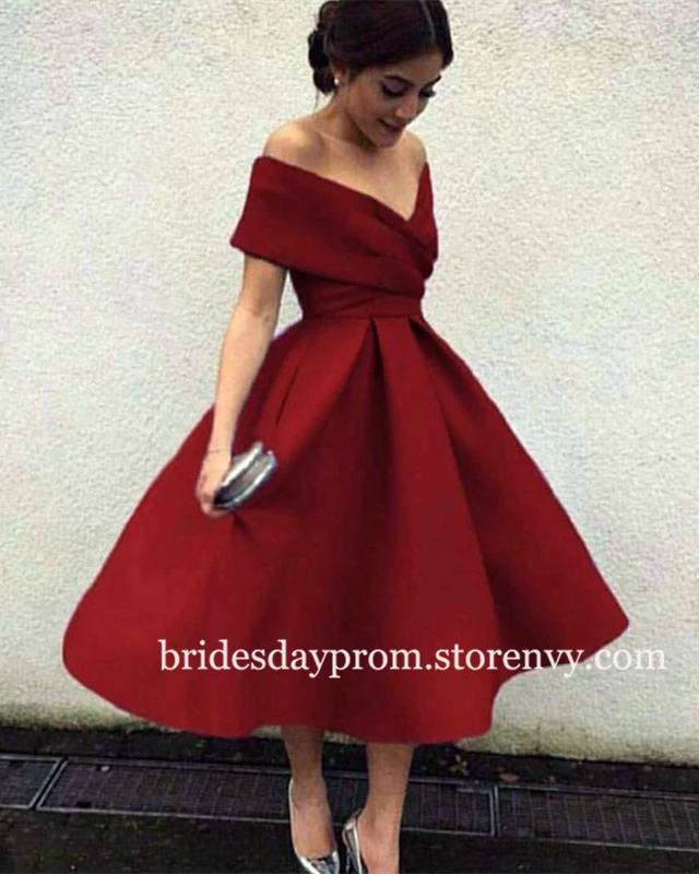 Vintage 1950s V-neck Off The Shoulder V Neck Tea Length Ball Gowns Party Dresses,Cocktail Dress for Weddings