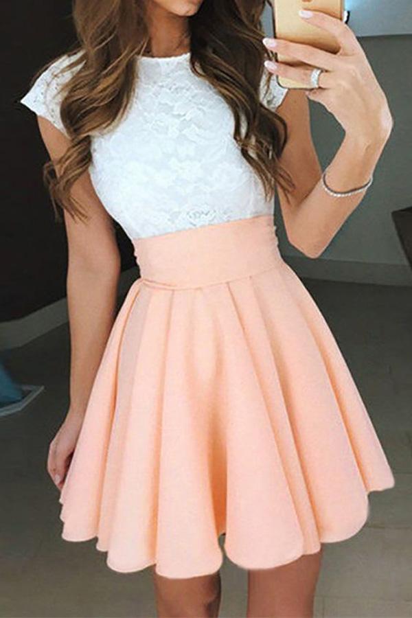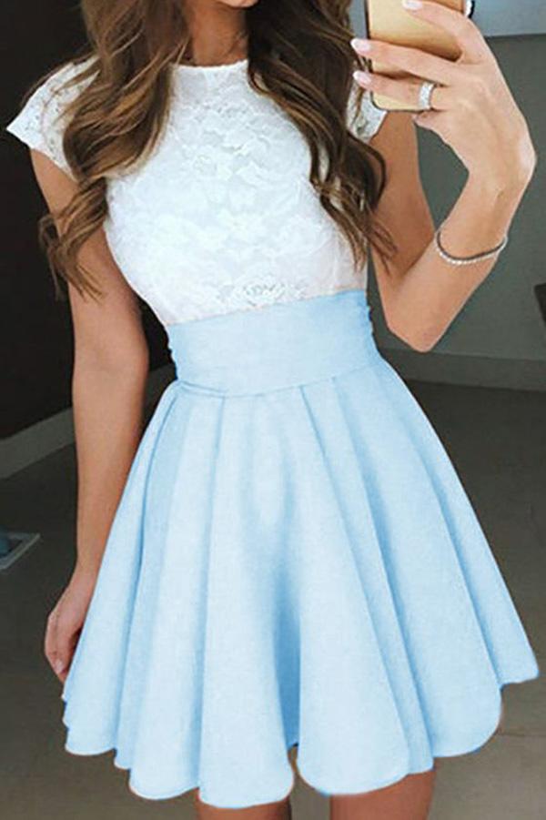 A Line Jewel Neck Capped Sleeve Keyhole Back Appliques Short Homecoming Dress