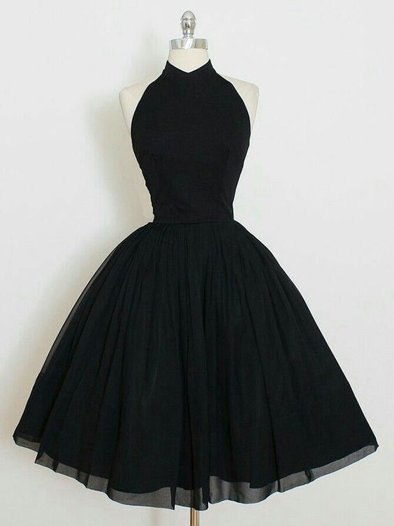 Charming A Line Halter Backless Black Chiffon Short Homecoming Dress,Little Black Dress