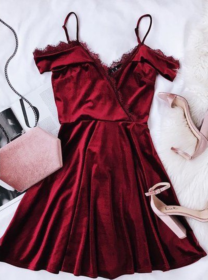Cute A Line Off the Shoulder Wine Velvet Short Homecoming Dresses with Lace,Casual Short Prom Dresses