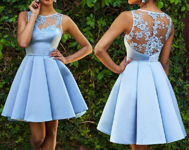 Lace Homecoming Dress A-line Scoop Satin Sexy Short Prom Dress Party Dress