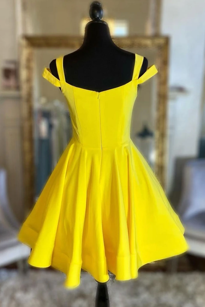 Cute Yellow Satin Cocktail Dresses A Line Back Open Short Prom Dress Homecoming