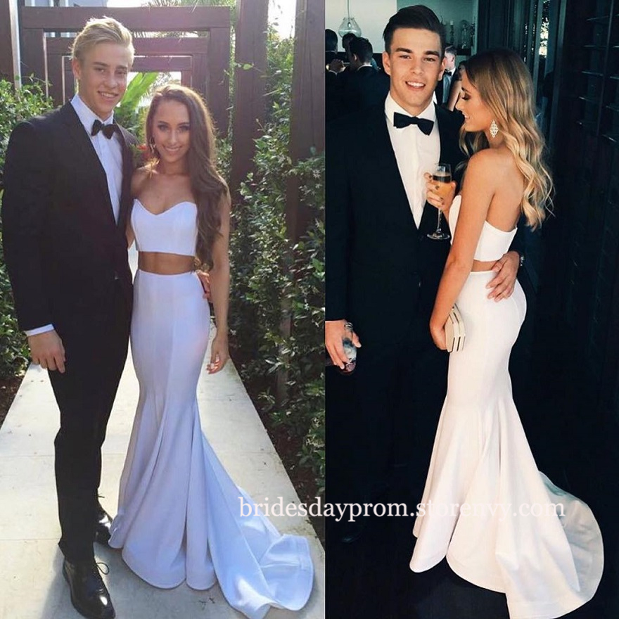 Two Piece Long Prom Dress,White Long Prom Dress,Simple Elegant Mermaid Long Prom Dress,Formal Dresses