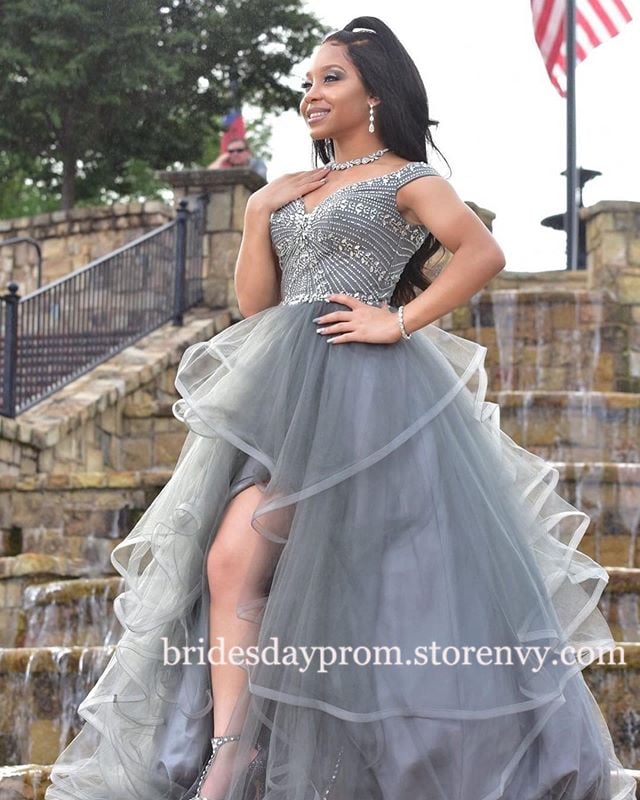Fashion Prom Dress With Crystal Beaded Tulle Ruffles Prom Dresses Evening Wedding Party Gown,Luxury Formal Dress,Prom Night for Black Girls