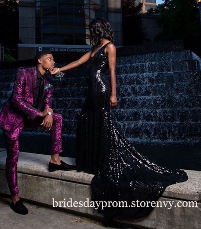 Black Evening Dress Long,Sequins V Neck Prom Dresses,Elegant Formal Party Dress