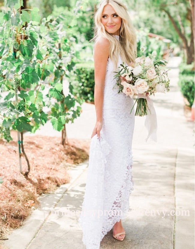 Chic White Lace Wedding Dress Back Open,Ivory Sweep Train Beach Boho Sweep Train Bridal Dresses,,Mermaid Sleeveless Wedding Dresses