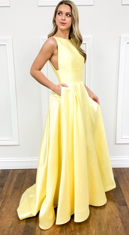 Charming Yellow Long Prom Dress,A Line Long Evening Dress with Pockets,Formal Dress Custom Size
