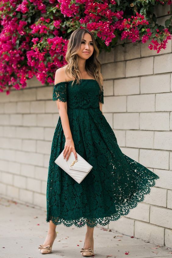 Green Lace Strapless Party Dress A Line Tea Length Prom Dress