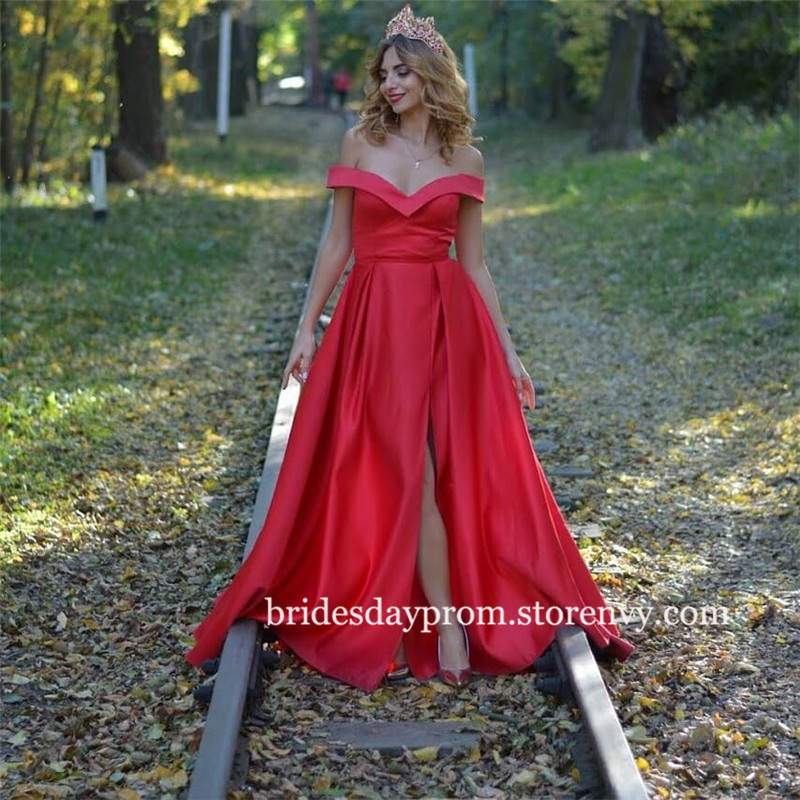 Simple backless long prom dress,red evening dress with Slit,Cheap Bridesmaid Dresses