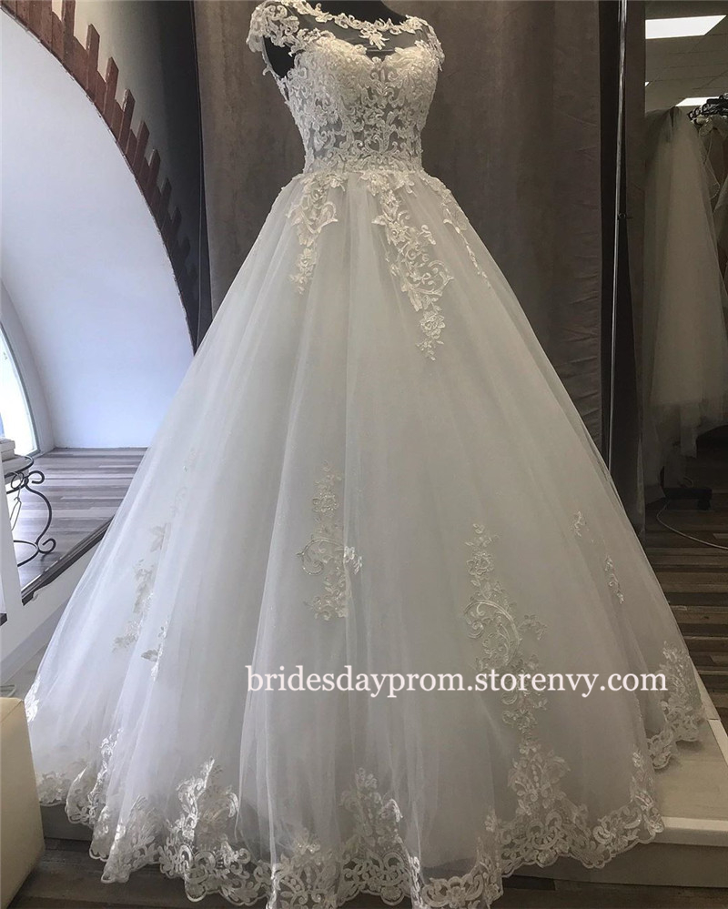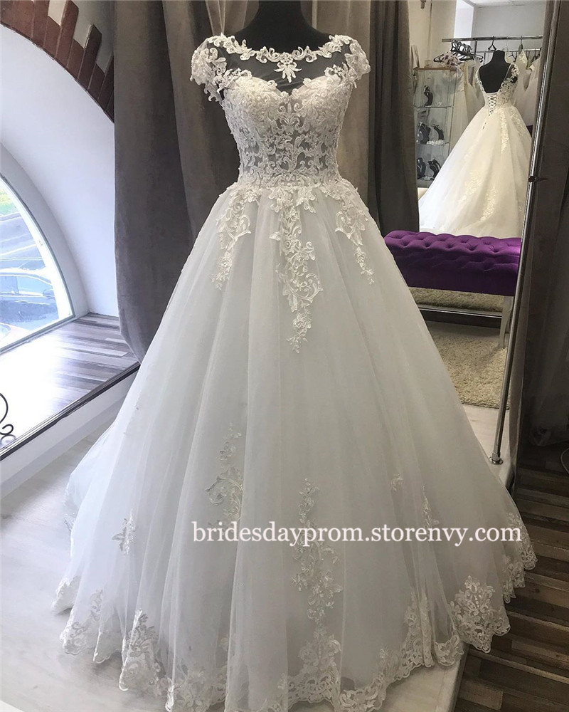 Glamorous Ivory Appliques Long Wedding Gowns,Princess White Corset Bridal Gown,Custom made Lace Wedding Dresses