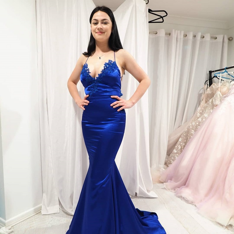 Sexy Royal Blue Mermaid Prom Dresses with Lace,Back Open Long Formal Dress Gala Dress