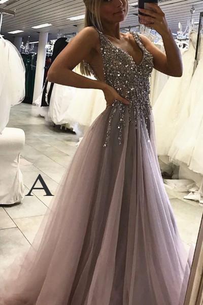 Sexy Grey Long Side Split Prom Dress,Sleeveless Tulle Evening Dress,Long Party Dress