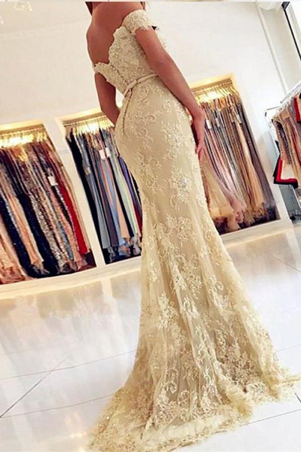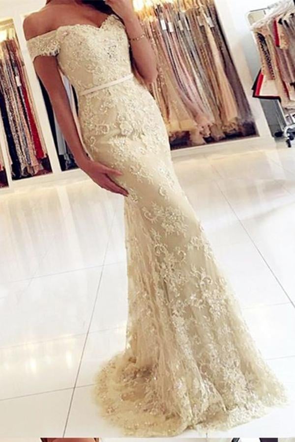 Fashion Off Shoulder Elegant Prom Party Dresses,Formal Evening Gowns Dress with appliques