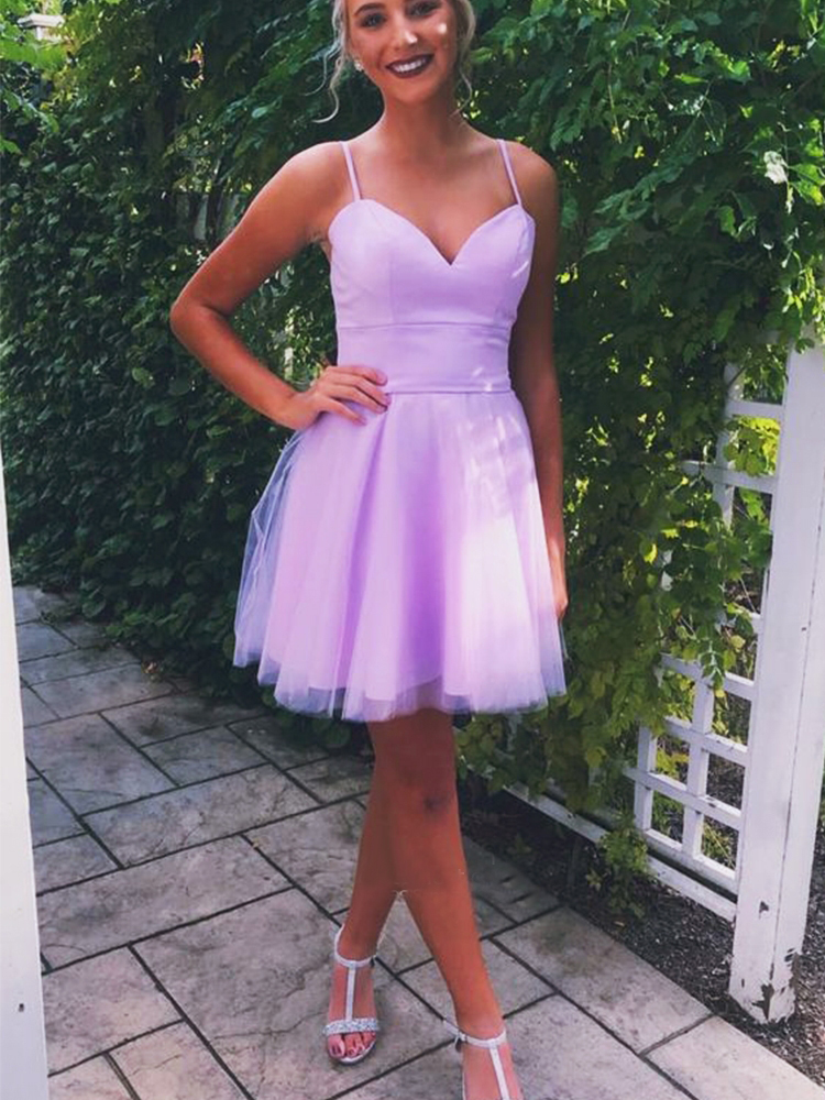 Sweetheart Spaghetti Straps Lavender Short Homecoming Dresses,Simple Short Prom Dresses