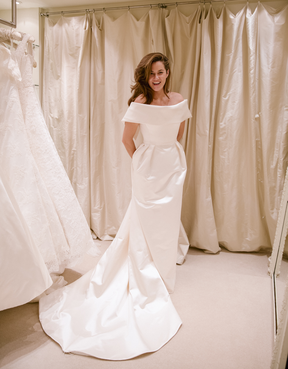 Simple Wedding Dress,Mermaid Satin Wedding Dress,Off Shoulder Wedding Dresses with Long Train