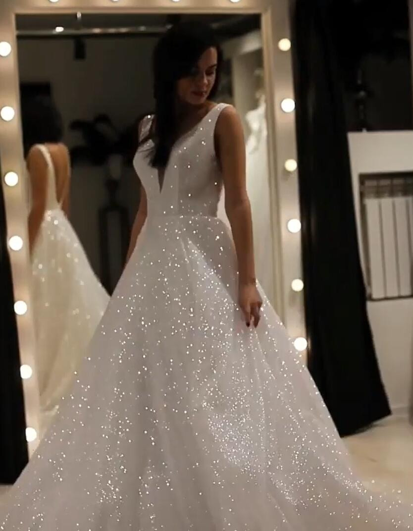 beach wedding dresses sparkle,Bridal Gowns V Neck Backless Wedding Dresses with Sequins