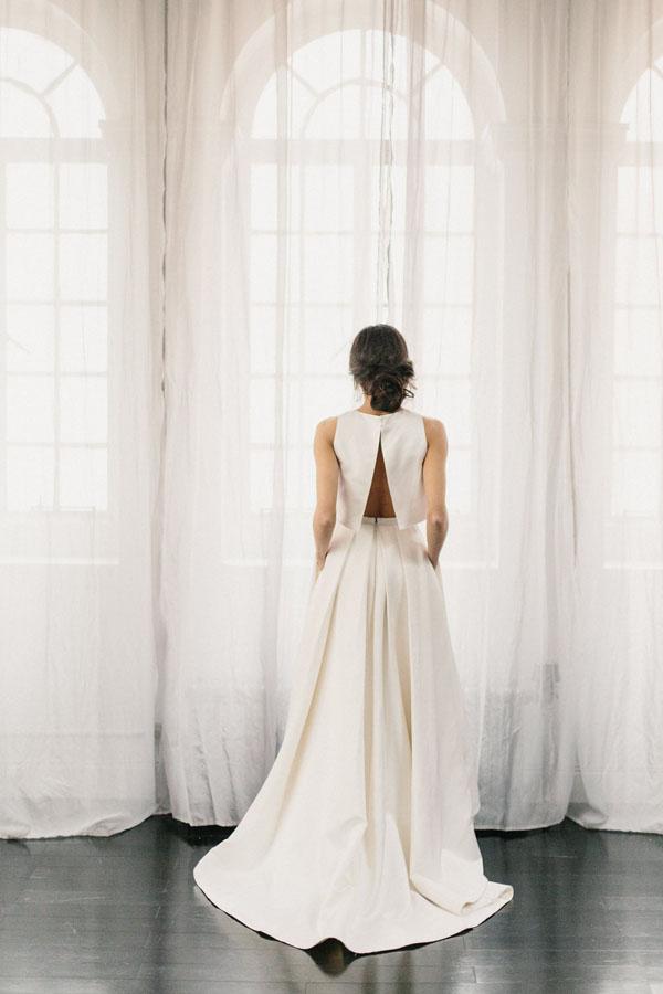 Simple Cheap Two Piece Ivory Satin A Line Long Bridal Dresses Beach Wedding Dresses,White Wedding Dresses with Pockets