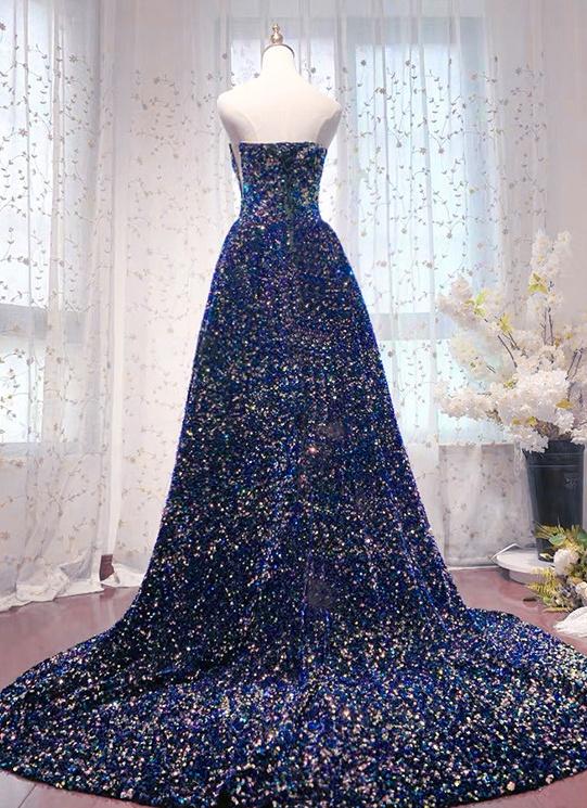 Chic Long Strapless Sparkly a Line Prom Dresses Formal Party Dress