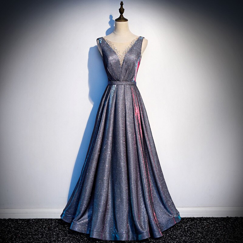 Sparkly Long A-line Scoop Neckling Prom Dresses For Teens Evening Dresses