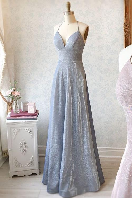 Unique Spaghetti Straps Long A-line Backless Prom Dresses For Teens
