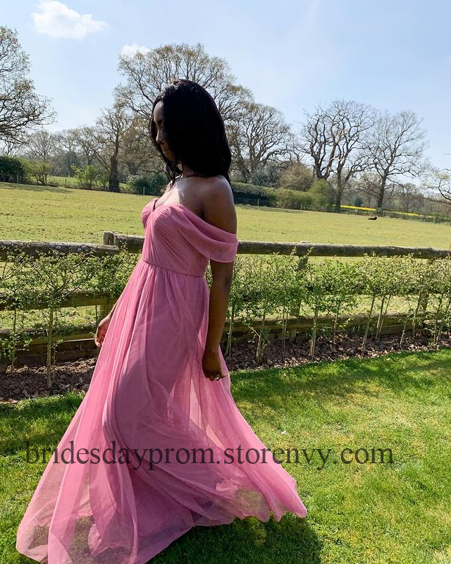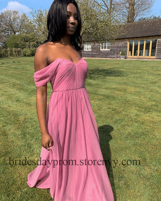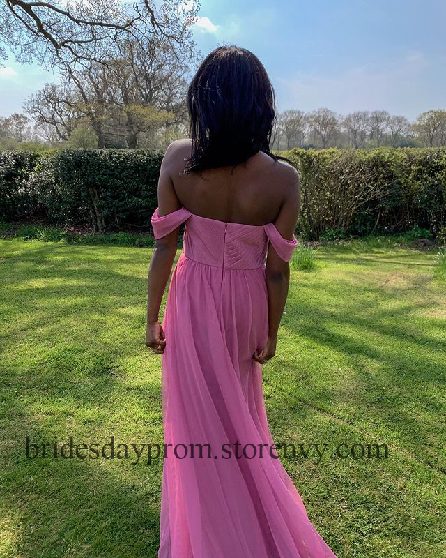 Dark Pink Pleated Chiffon Evening Dresses for Wedding,Backless A Line Party Dress