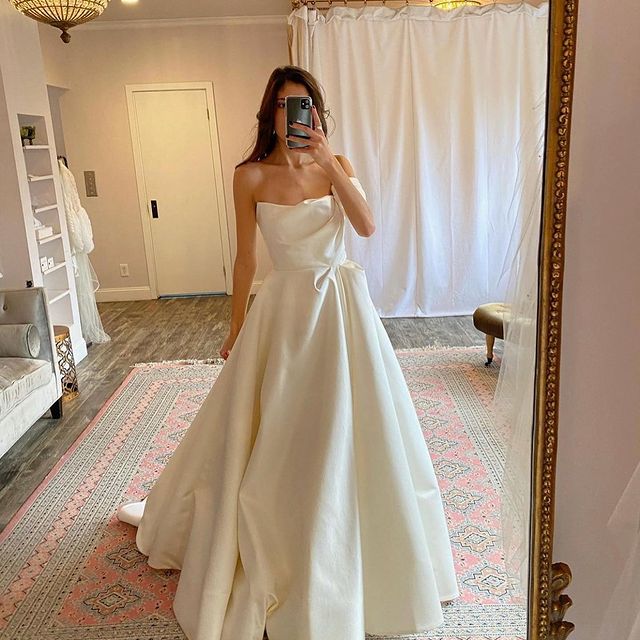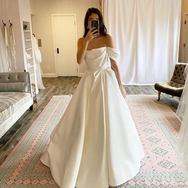 Cheap Satin White Wedding Dresses,Back Open Long Women Bridal Gown with Train