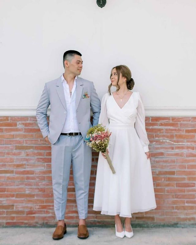 Cacusal Short Beach Wedding Dress,Long Sleeve Chiffon Tea Length Bridal Dresses