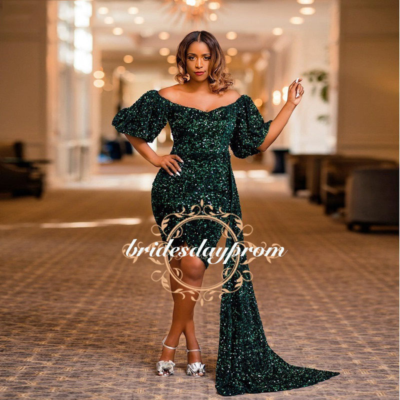 Green Short Prom Dresses Half Sleeves Sheath Bling Sequins Wedding Party Gowns,Evening Dress