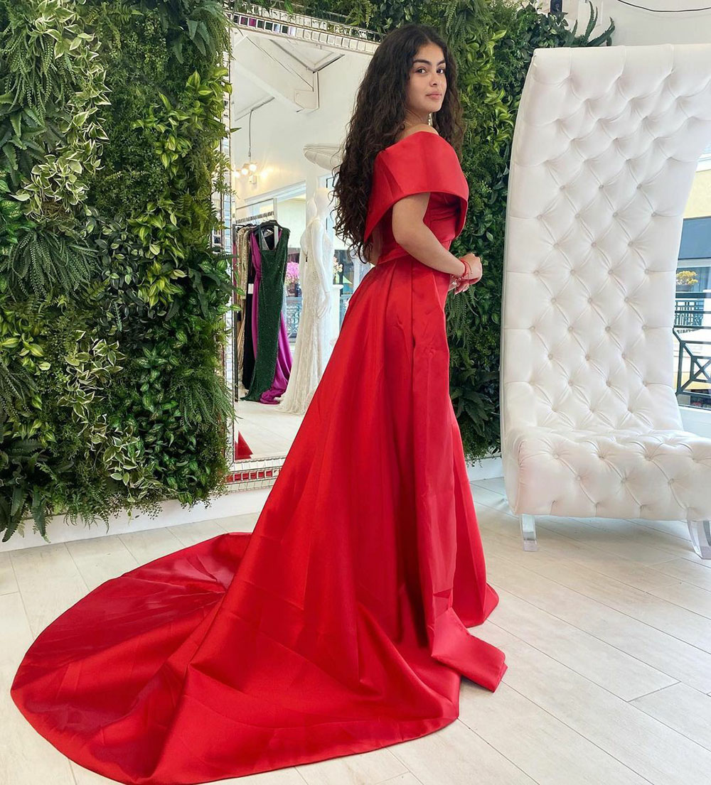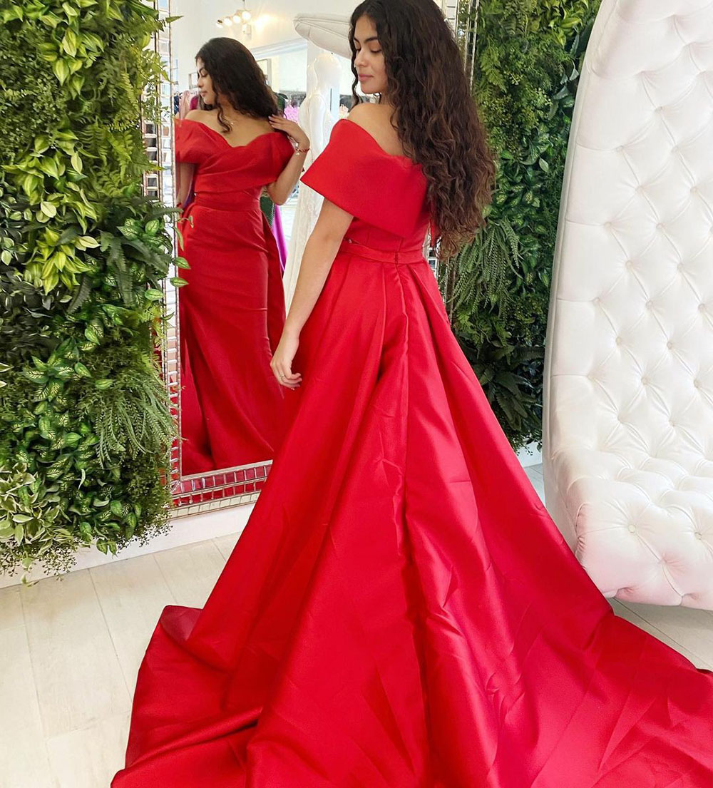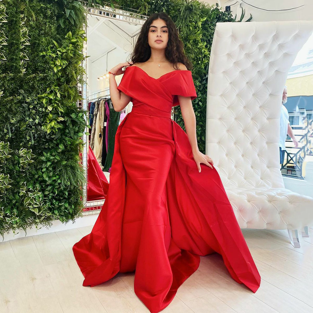 Red Satin Evening Dresses Mermaid Formal Party Dress with Detachable Tail,celebrity dresses