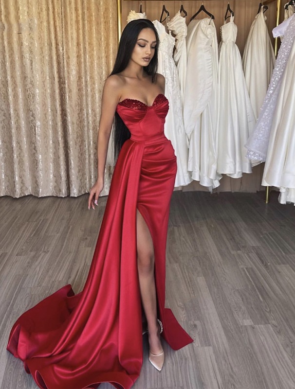 Red Mermaid Long Prom Dresses,Side Slit Party Evening Gowns,fancy dresses,maxi dress