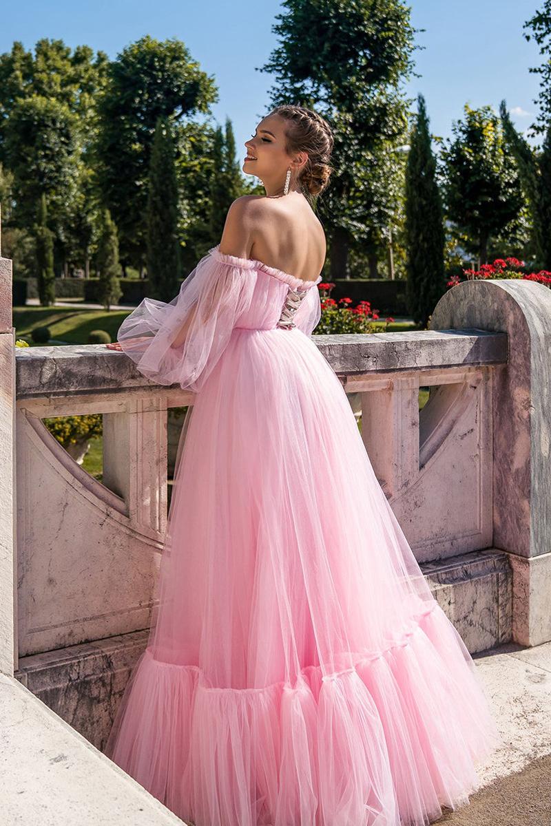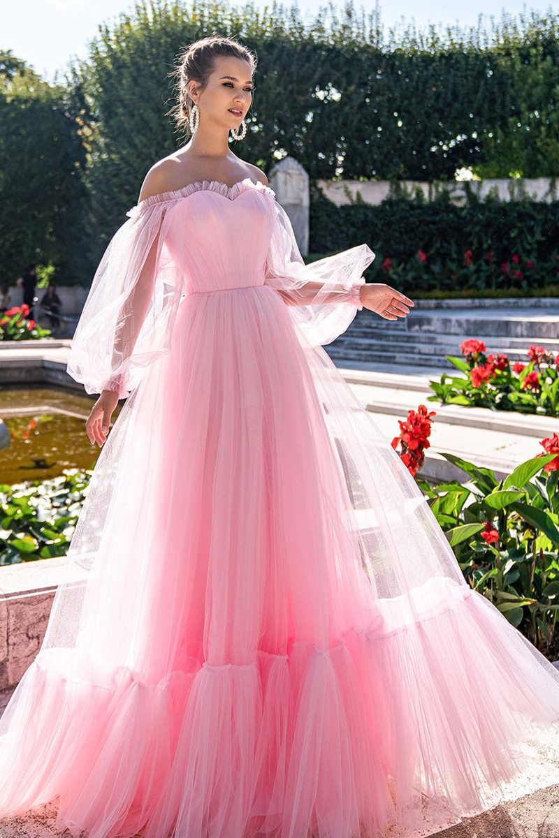 Draped Pleats Long Sleeve Tulle A-line Prom Dresses,Women Formal Evening Gowns,dresses for party events