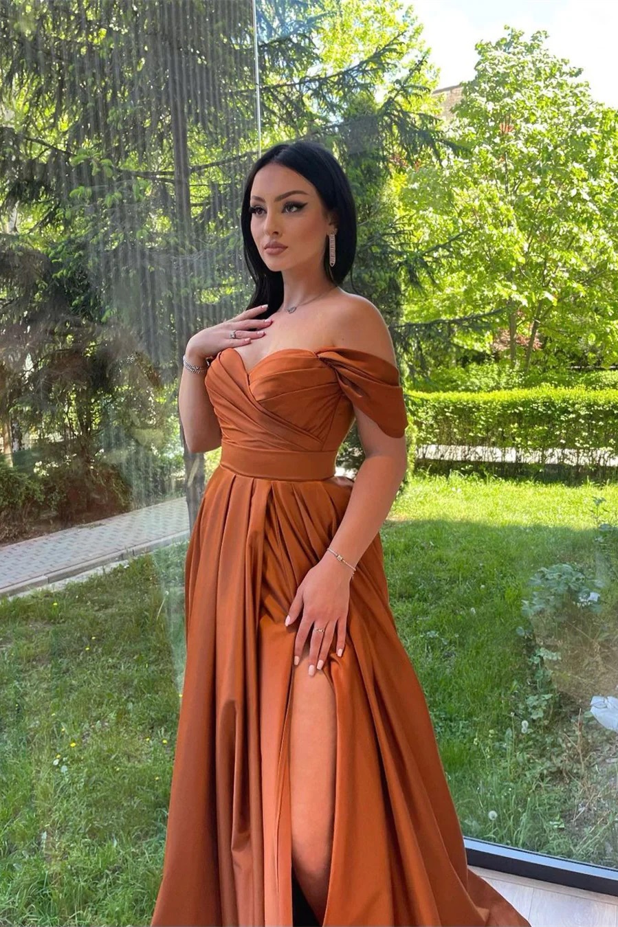 A-line Off the Shoulder Sweetheart High Split Long Prom Dress Maxi Dinner Dresses
